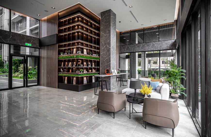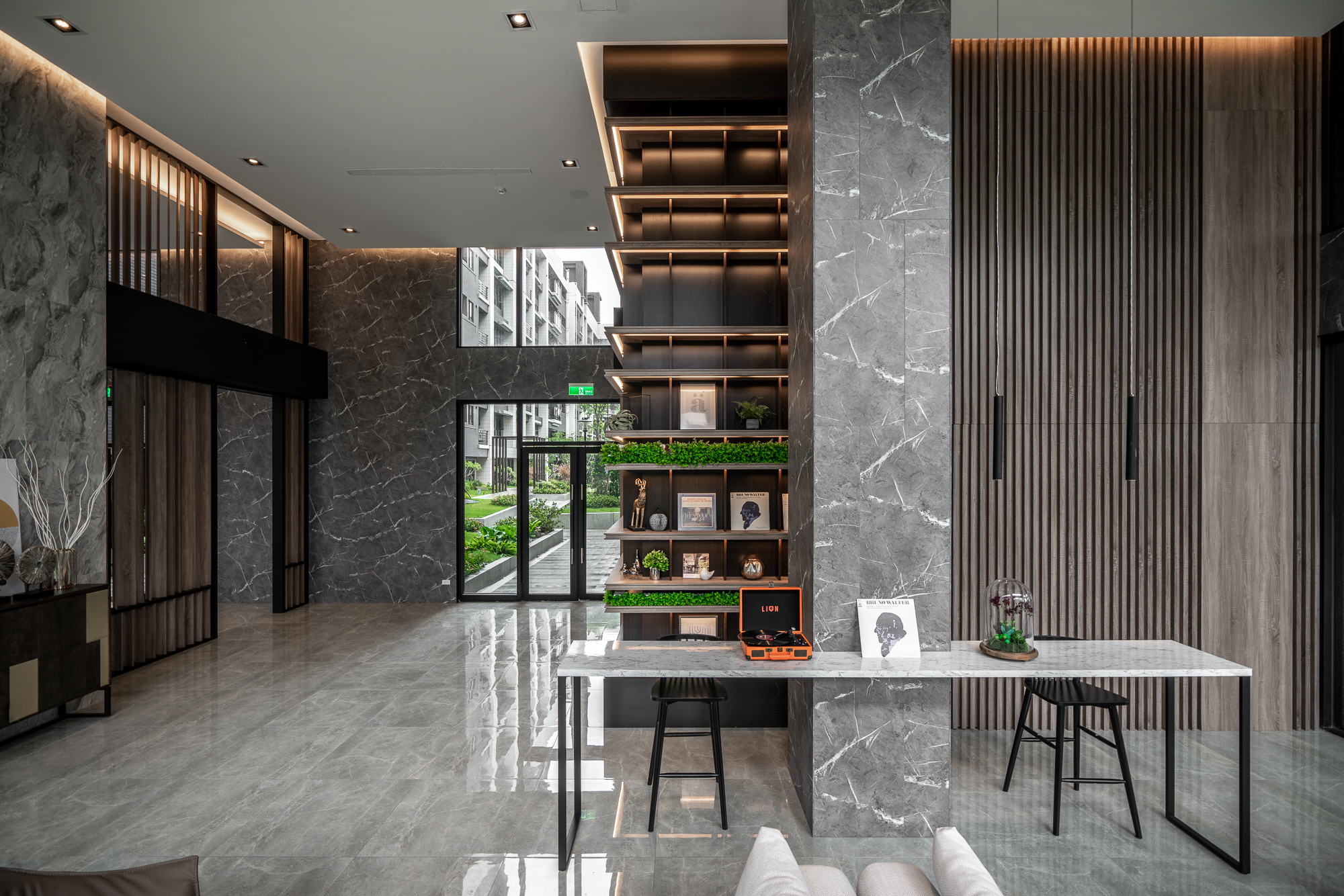 在這次的作品中,以層疊、漸變、光、累加等元素構成。以簡單俐落的線條作為主體設計,透過格柵的線條及複層櫃體的疊加使其量體飽滿,以充滿秩序及規律的空間給予使用者充滿理性的沉浸感。